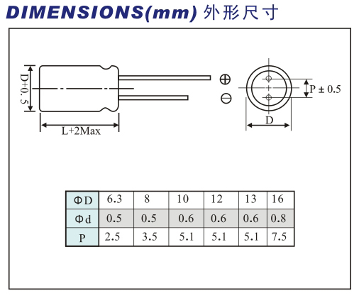 Life time:105℃,6000 hours