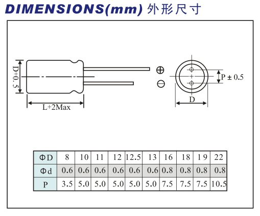 壽命:125℃,2000 小時或105℃ ,8000 小時